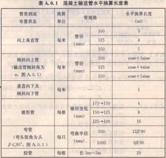 A.0.1 混凝土輸送管的泵送阻力宜按表A.0.1進(jìn)行等效換算。大牛工程師