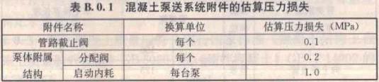B.0.1 混凝土泵送系統(tǒng)附件的估算壓力損失宜按表B.0.1取值累加計(jì)算。