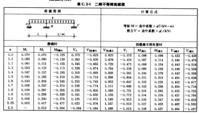 C.2 不等跨連續(xù)梁在均布荷載作用下的彎矩、建立系數(shù)