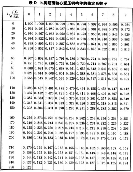 附錄D b類截面軸心受壓鋼構(gòu)件穩(wěn)定系數(shù)