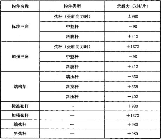 B.0.1 六四式軍用梁構(gòu)件根據(jù)材質(zhì)分為標準型與加強型兩種型號,構(gòu)件檢算時,構(gòu)件承載能力應(yīng)按表B.0.1取用。
