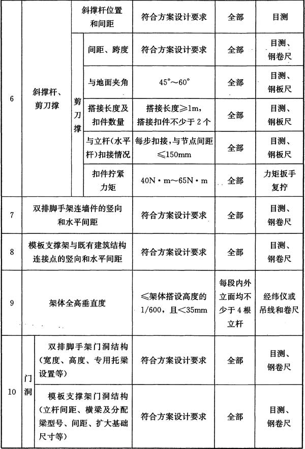 1 架體三維尺寸和門洞設(shè)置應(yīng)符合方案設(shè)計的要求;