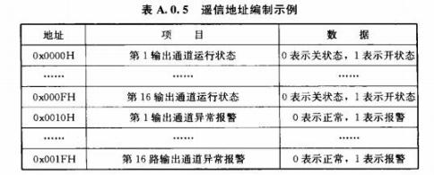 A.0.5遙信應(yīng)采用功能碼0x02(讀)。數(shù)據(jù)區(qū)地址應(yīng)按表A.0.5示例編址。
