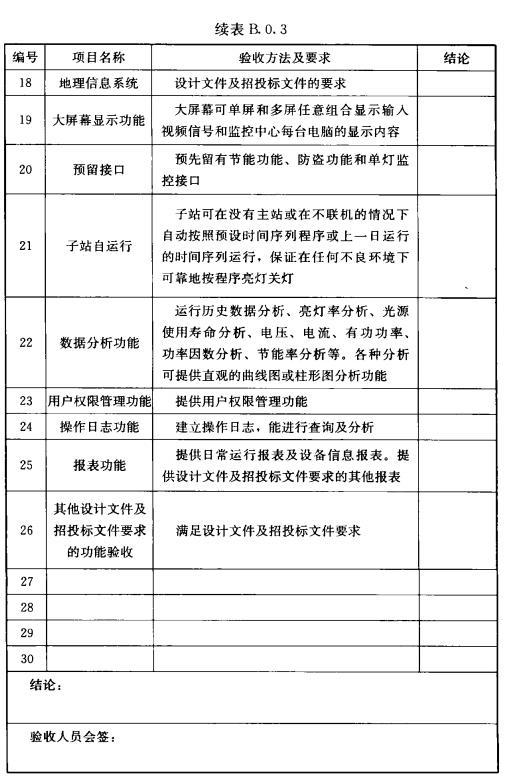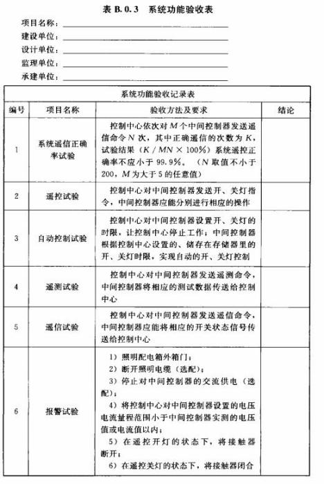 B.0.3城市照明自動控制系統(tǒng)驗收時應(yīng)按表B.0.3填寫系統(tǒng)功能驗收表。