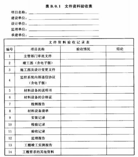 B.0.1城市照明自動控制系統(tǒng)驗收時應(yīng)按表B.0.1填寫文件資料驗收表。