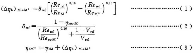 (△ηh)M→M*——ReM下?lián)Q算至ReM*下的效率值;