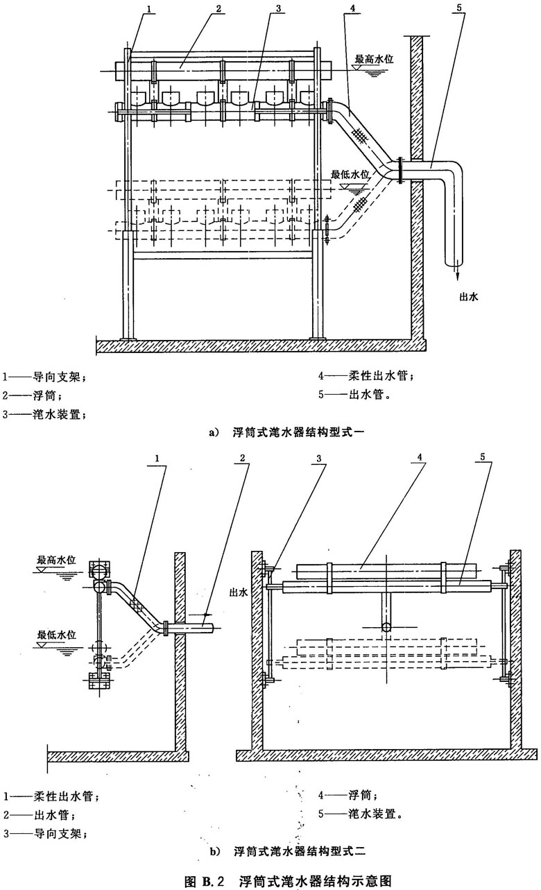 潷水器按其結(jié)構(gòu)形式可分為:機械旋轉(zhuǎn)式、浮筒式和虹吸式。具體分類與型號參見附錄A。