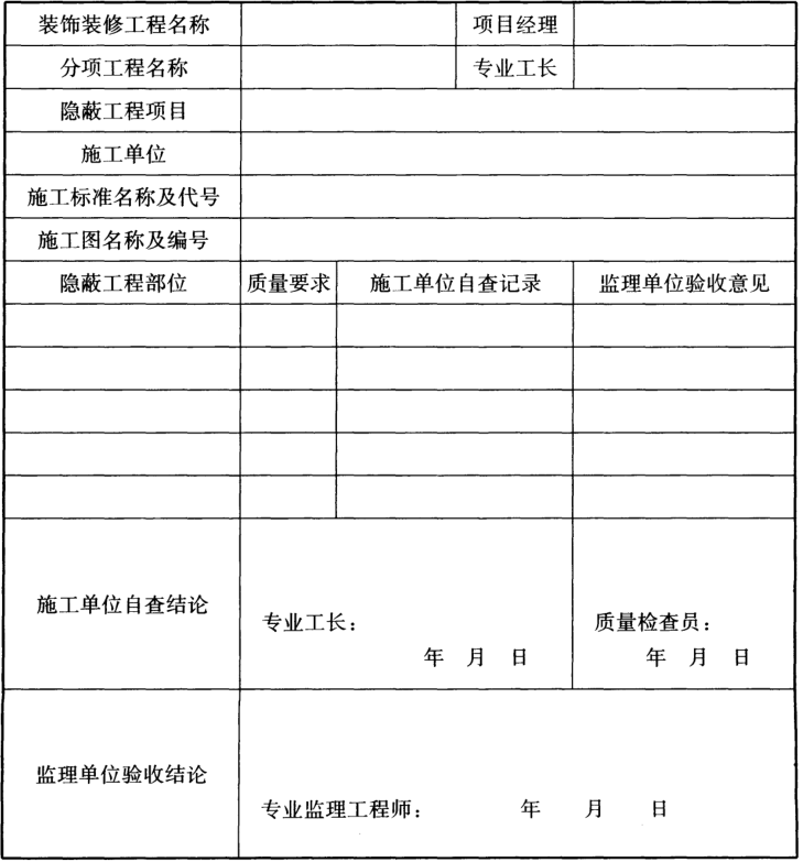 15.0.3 建筑裝飾裝修工程施工過程中,應(yīng)按本標(biāo)準(zhǔn)的要求對(duì)隱蔽工程進(jìn)行驗(yàn)收,并應(yīng)按本標(biāo)準(zhǔn)附錄B的格式記錄。