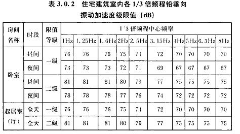 3.0.2住宅建筑室內(nèi)各1/3倍頻程鉛垂向振動加速度級限值應(yīng)符合表3.0.2的規(guī)定。