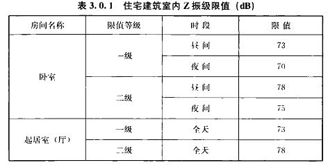 3.0.1住宅建筑室內(nèi)Z振級限值應(yīng)符合表3.0.1的規(guī)定。