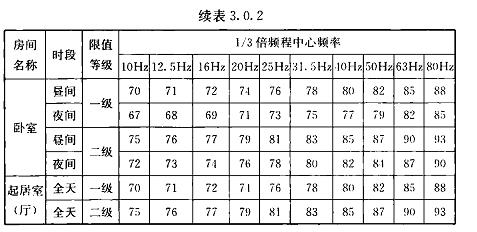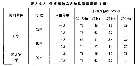 3.0.3住宅建筑室內(nèi)結(jié)構(gòu)噪聲限值應(yīng)符合表3.0.3的規(guī)定。