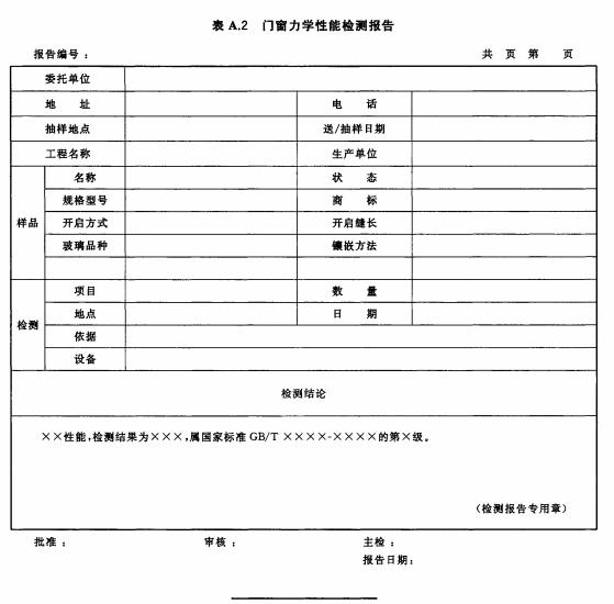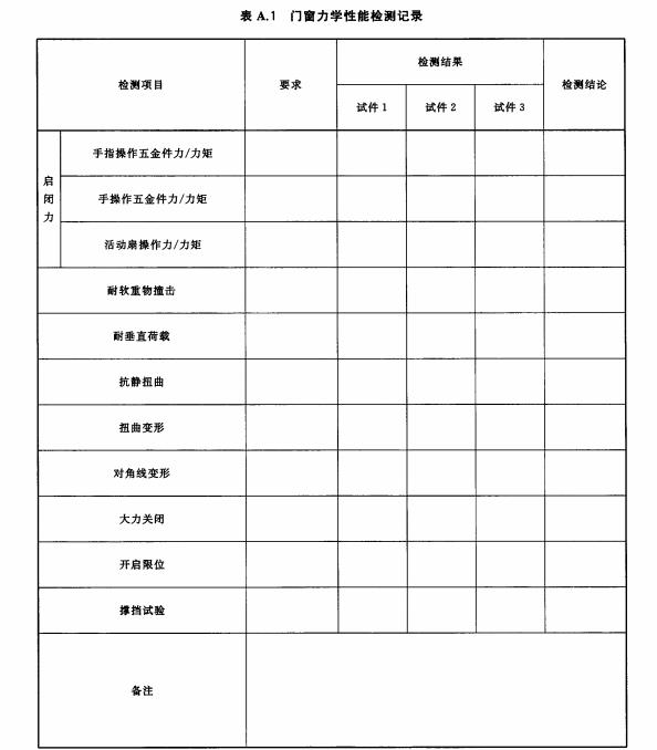 附錄A(資料性附錄)門窗力學性能檢測記錄及報告