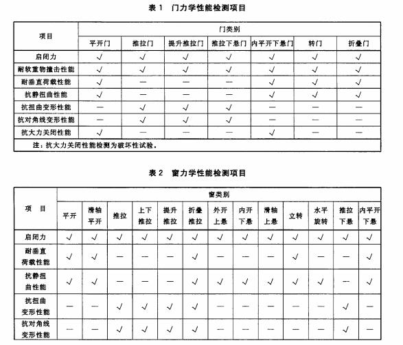 建筑門和窗力學性能檢測項目應分別符合表1和表2的規(guī)定。