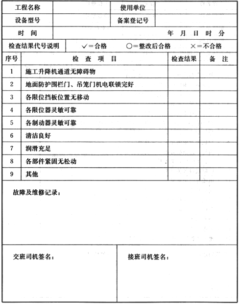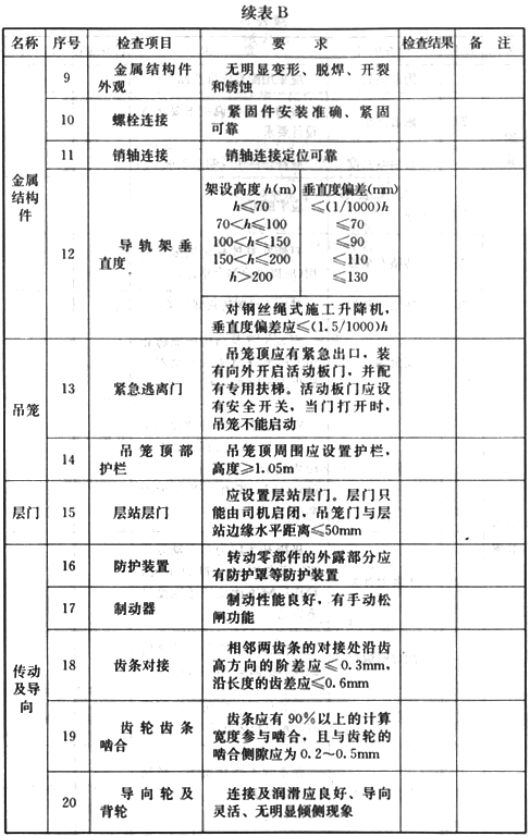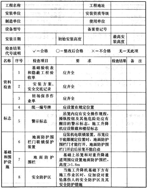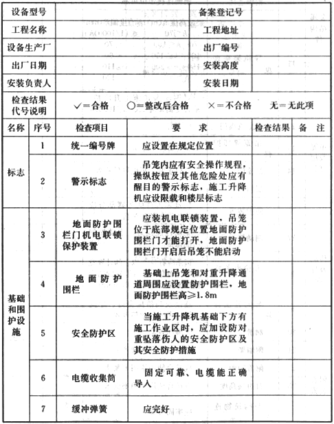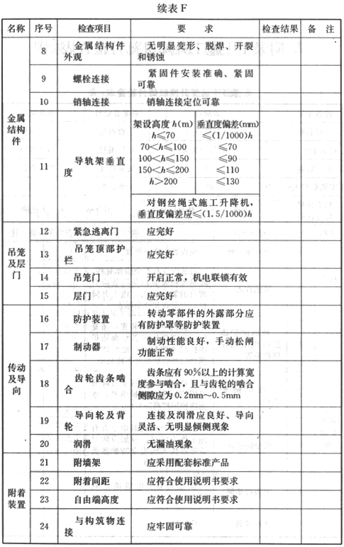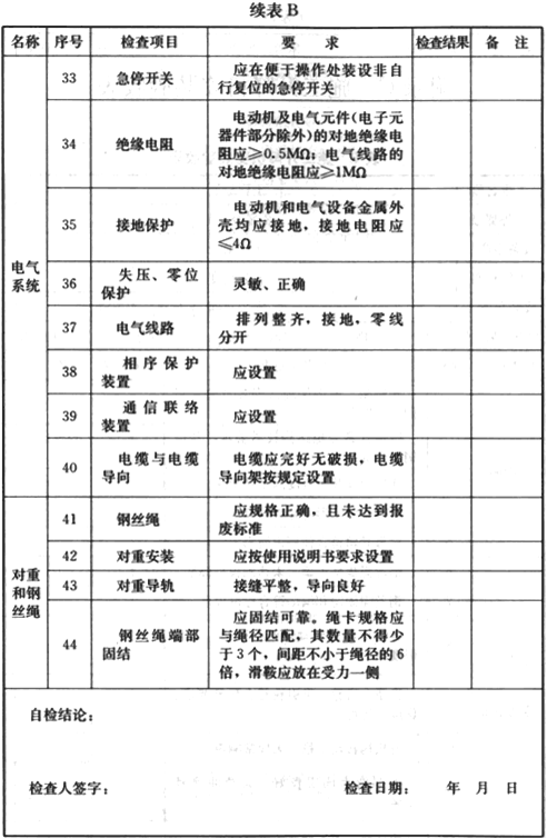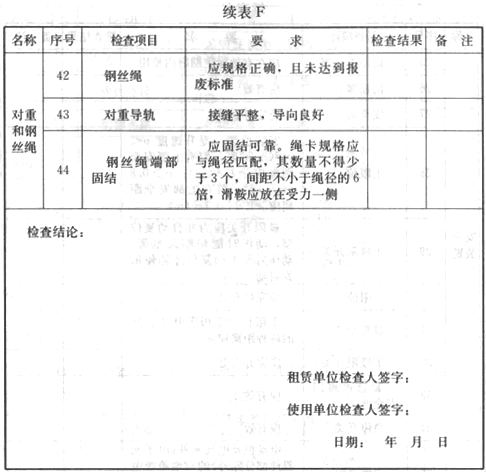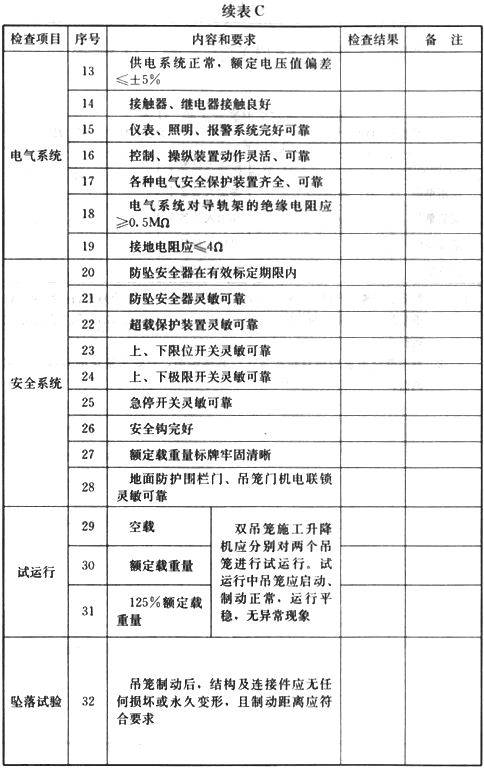 注:1 新安裝的施工升降機及在用的施工升降機應至少每3個月進行一次額定載