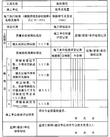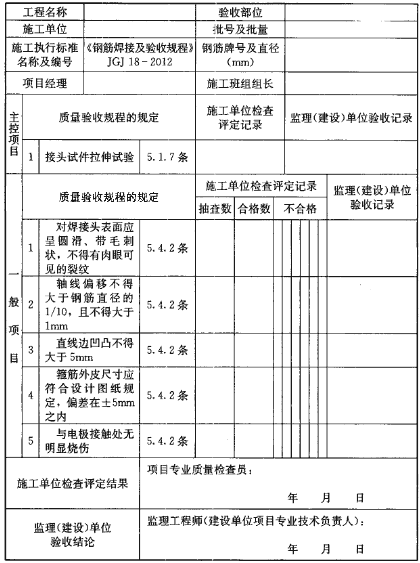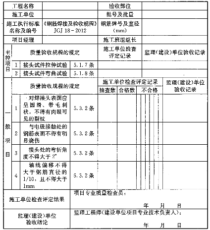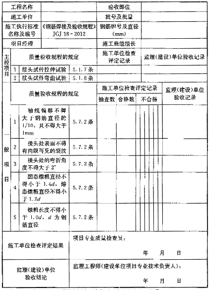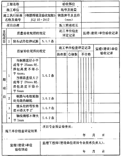 附錄A 鋼筋焊接接頭檢驗批質(zhì)量驗收記錄