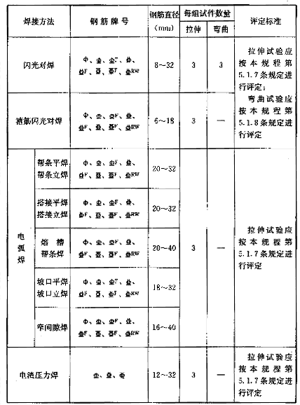 6.0.7 焊工操作技能考試評定標(biāo)準應(yīng)符合表6.0.7的規(guī)定;焊接方法、鋼筋牌號及直徑,試件組合與組數(shù),應(yīng)由考試單位根據(jù)實際情況確定。焊接參數(shù)應(yīng)由焊工自行選擇。