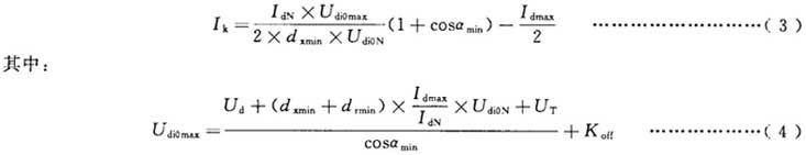 ——當(dāng)單閥中所有的晶閘管級全部短路或單閥外部閃絡(luò)(實(shí)際上將形成兩相短路電流,這種故障在整流側(cè)最為嚴(yán)重),閥的最大短路電流可用式(3)計(jì)算: