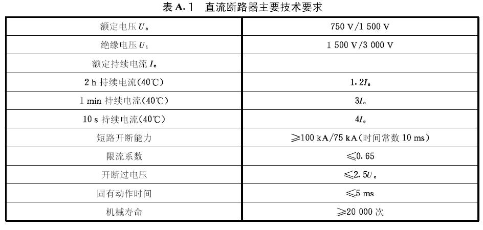 附錄A 直流斷路器主要技術(shù)要求