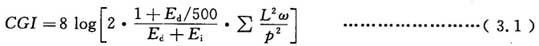 根據(jù)一項(xiàng)對(duì)不舒適眩光的研究和實(shí)踐,在CIE No.55中,提出了下面的CIE眩光指數(shù)(CGI)公式: