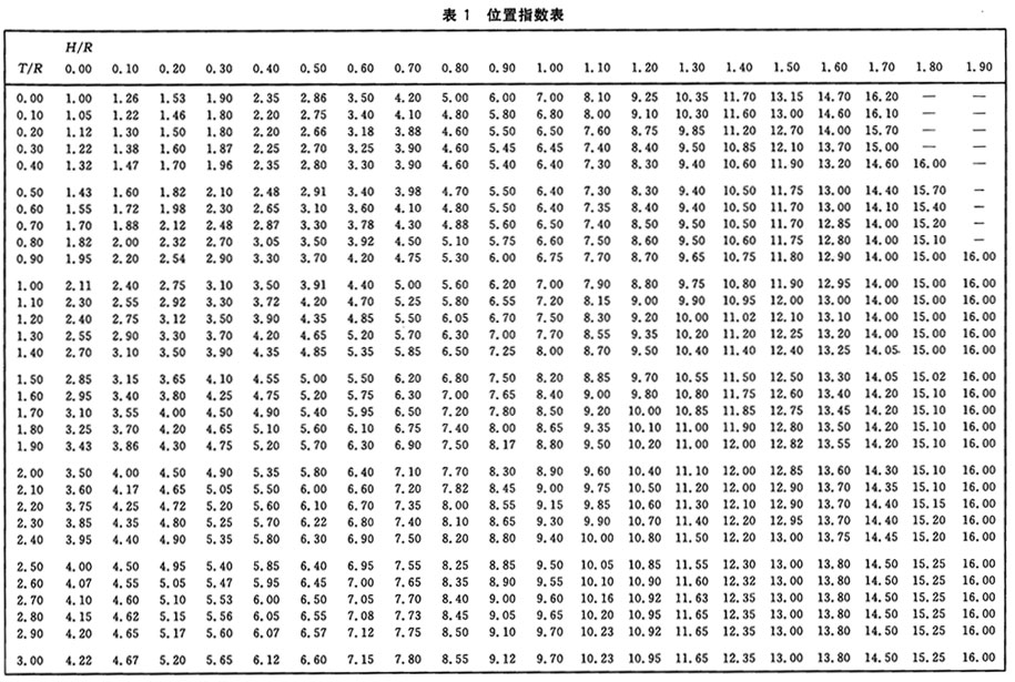 需要注意的是:參數(shù)T/R中,位置指數(shù)是對(duì)稱的,所以表格中僅包含此參數(shù)的非負(fù)值。表格中的項(xiàng)目是T/R的絕對(duì)值。