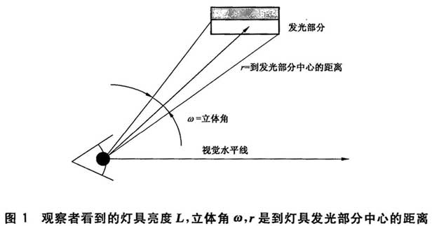 立體角的大小可以通過(guò)燈具發(fā)光部分的投影面積和燈具中心到觀察者眼睛的距離推得。