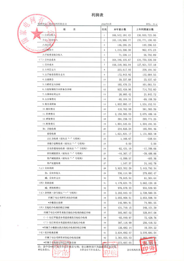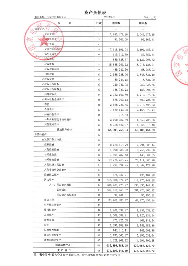 截至2022年6月30日,國家電網(wǎng)總資產(chǎn) 476,137,581.72萬元,上年同期 471,207,144.49萬元,同比增1.05%。營業(yè)總收入 166,542,184.43萬元,上年同期 136,930,723.06萬元,同比增21.6%。利潤總額4,179,621.75萬元,上年同期3,662,120.18萬元,同比增14.13%。凈利潤 3,202,943.42 萬元,上年同期2,728,580.25萬元,同比增17.38%。大牛工程師