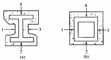 B.0.2 當(dāng)檢測幕墻的鋼結(jié)構(gòu)防火涂層厚度時,可在構(gòu)件長度內(nèi)每隔3m取一截面,在鋼結(jié)構(gòu)的四個側(cè)面中點進行測試(圖B.0.2)。