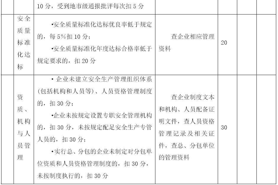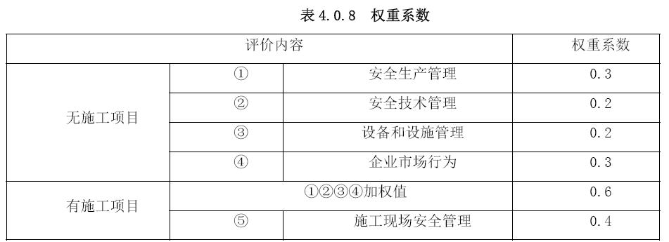 4.0.4 對(duì)施工企業(yè)安全生產(chǎn)條件的量化評(píng)價(jià)應(yīng)符合下列要求: