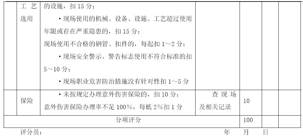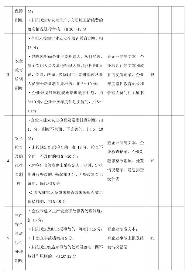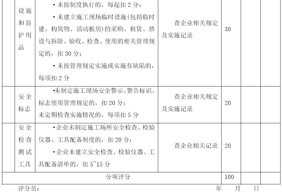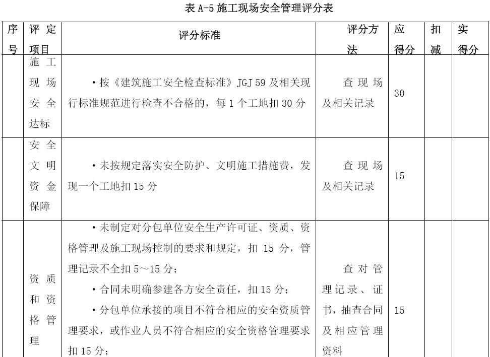 3 施工企業(yè)的安全生產(chǎn)情況應(yīng)依據(jù)自評(píng)價(jià)之月起前12個(gè)月以來的情況,施工現(xiàn)場應(yīng)依據(jù)自開工日起至評(píng)價(jià)時(shí)的安全管理情況;