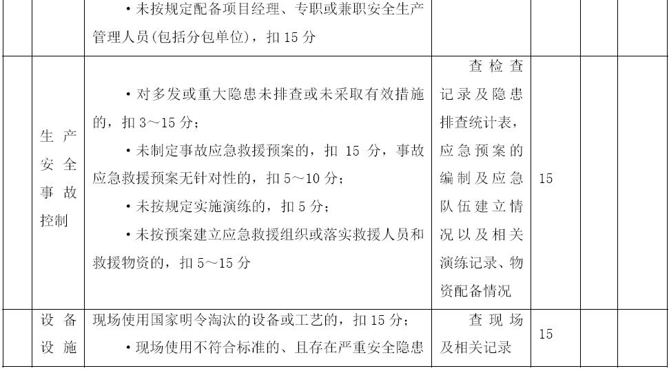 4.0.8 安全生產(chǎn)條件和能力評(píng)分應(yīng)符合下列要求: