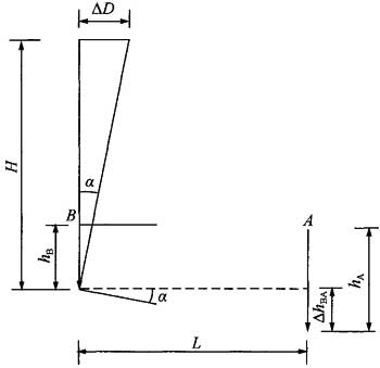 B.0.3 建筑物主體傾斜值△D及傾斜率i(圖B.0.3),應按下列公式計算: