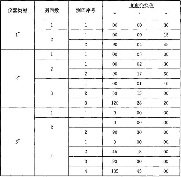 表A 用1″、2″、6″儀器方向觀測法度盤配置表