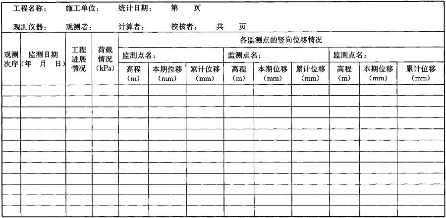附錄C 豎向位移監(jiān)測成果統(tǒng)計表