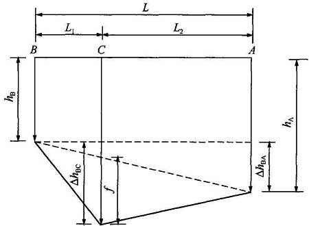 式中:hA、hB——傾斜段兩端監(jiān)測點A、B的豎向位移量;