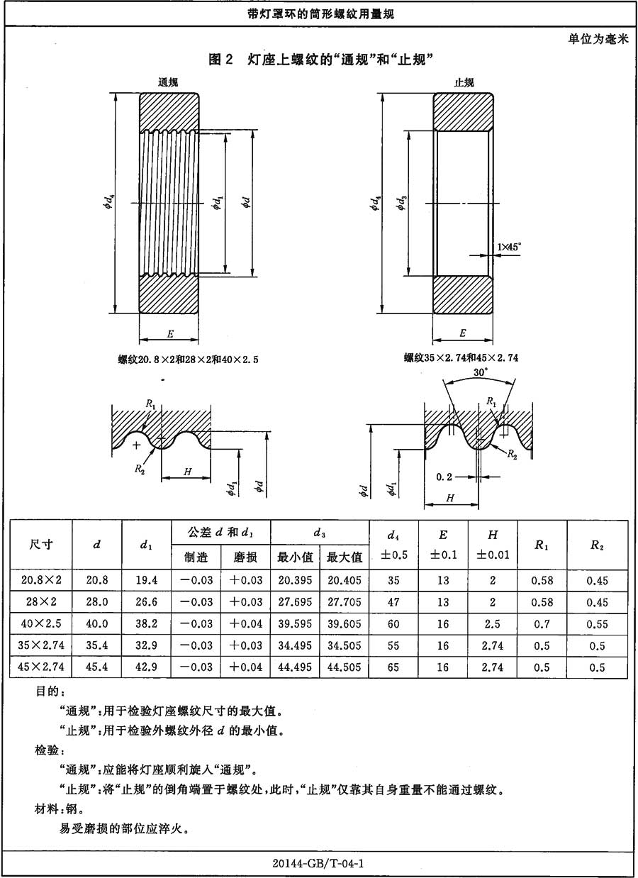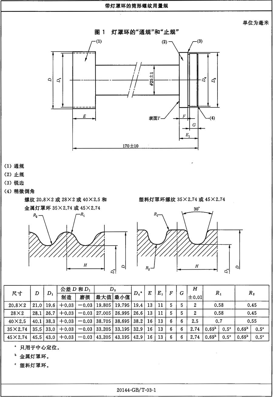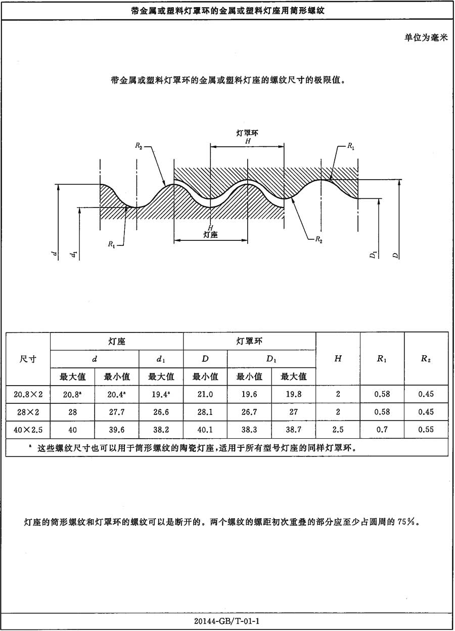 本標(biāo)準(zhǔn)也包含燈罩環(huán)用筒形螺紋。