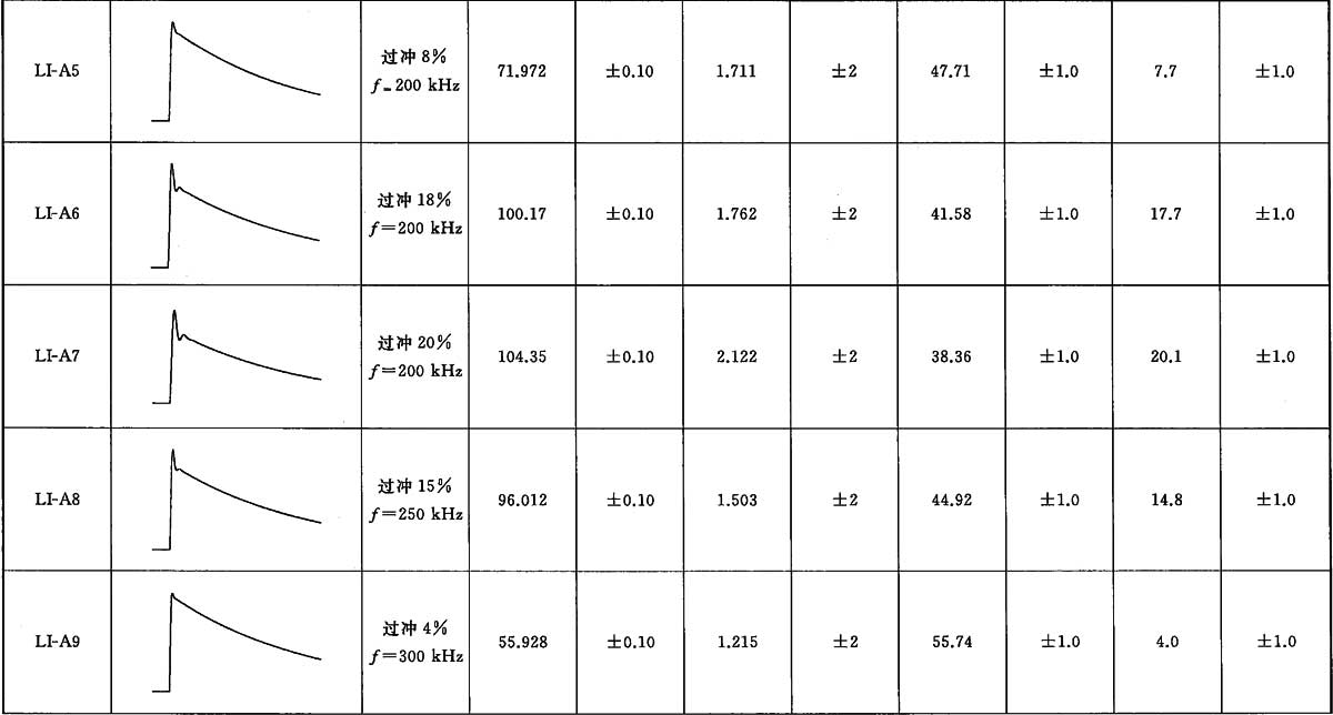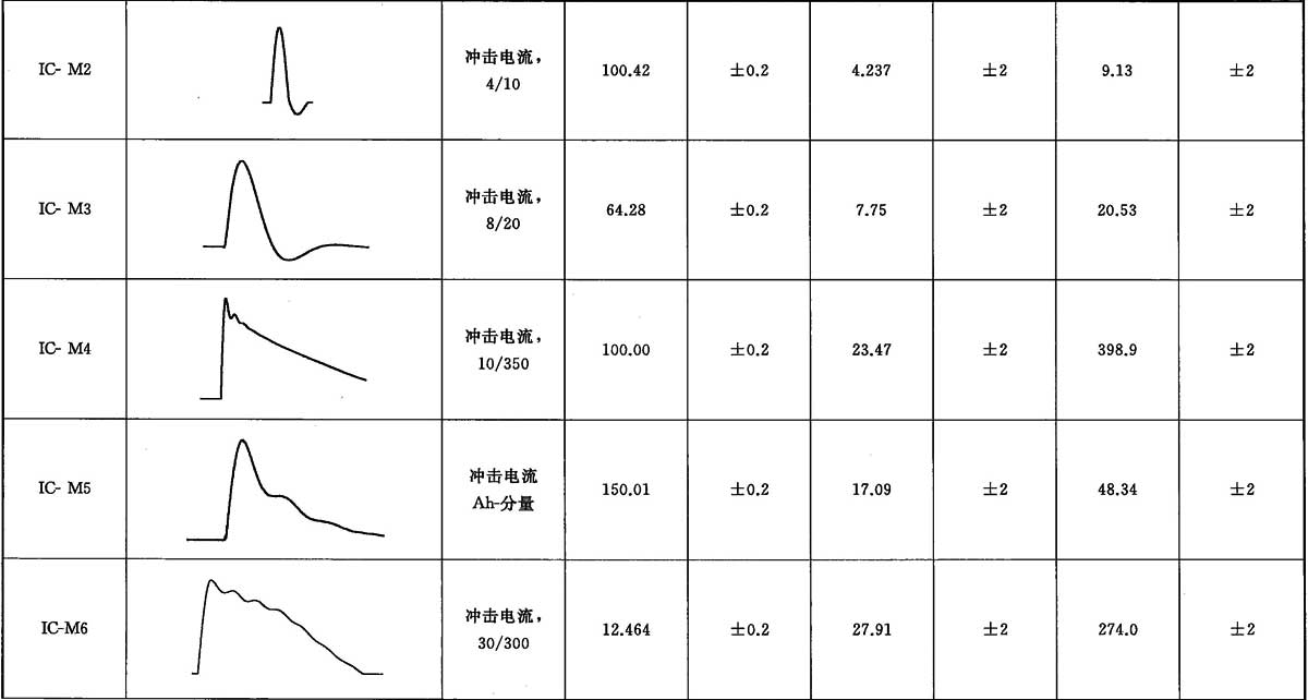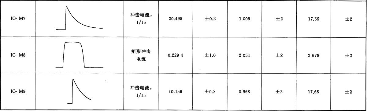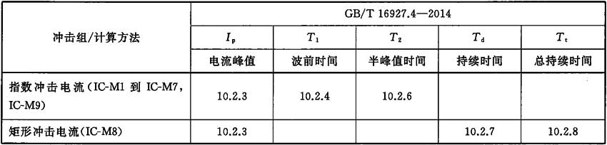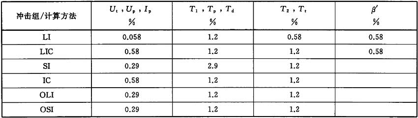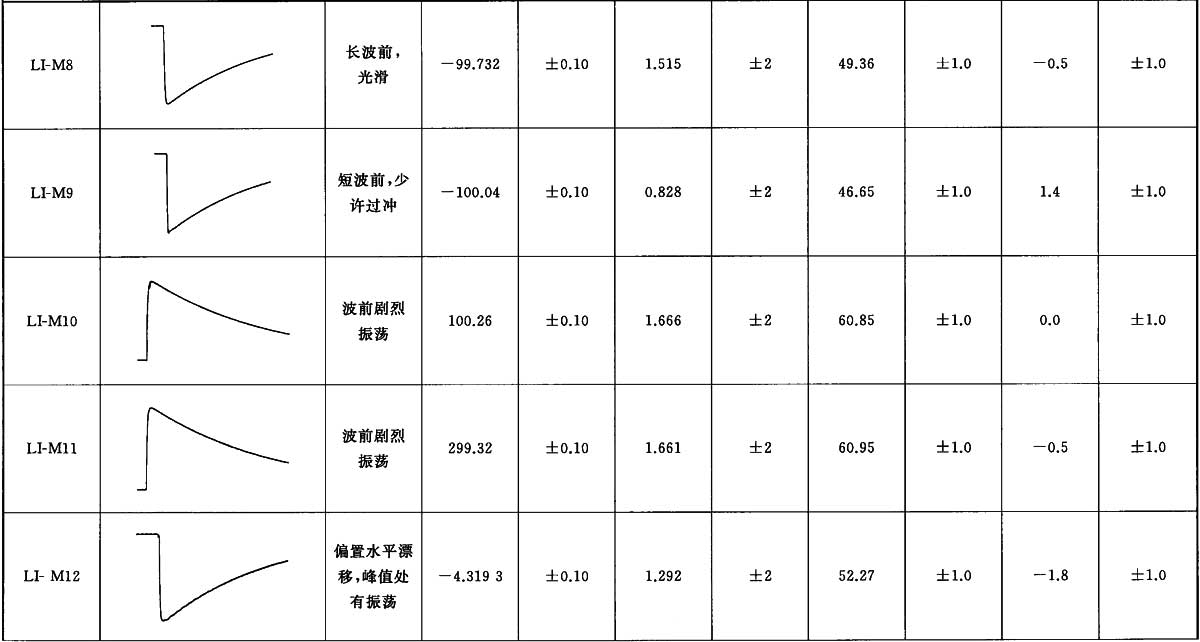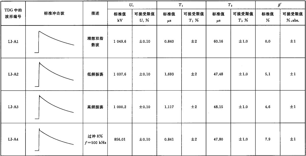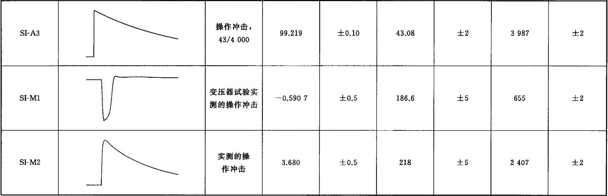 標(biāo)準(zhǔn)沖擊波形的參數(shù)值見表A.1~表A.6。