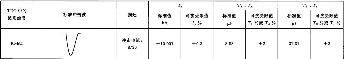 表A.4 沖擊電流波(IC)參數(shù)的標(biāo)準(zhǔn)值及其可接受的限值