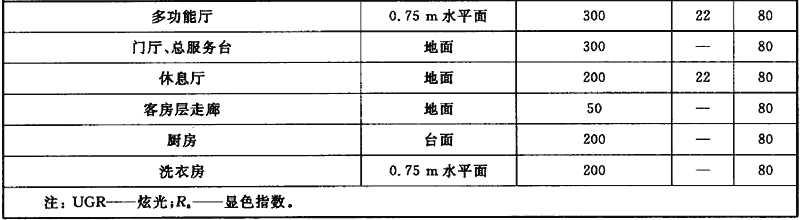 6.2 賓館、飯店建筑實(shí)際運(yùn)行照度標(biāo)準(zhǔn)值應(yīng)達(dá)到表3的規(guī)定。