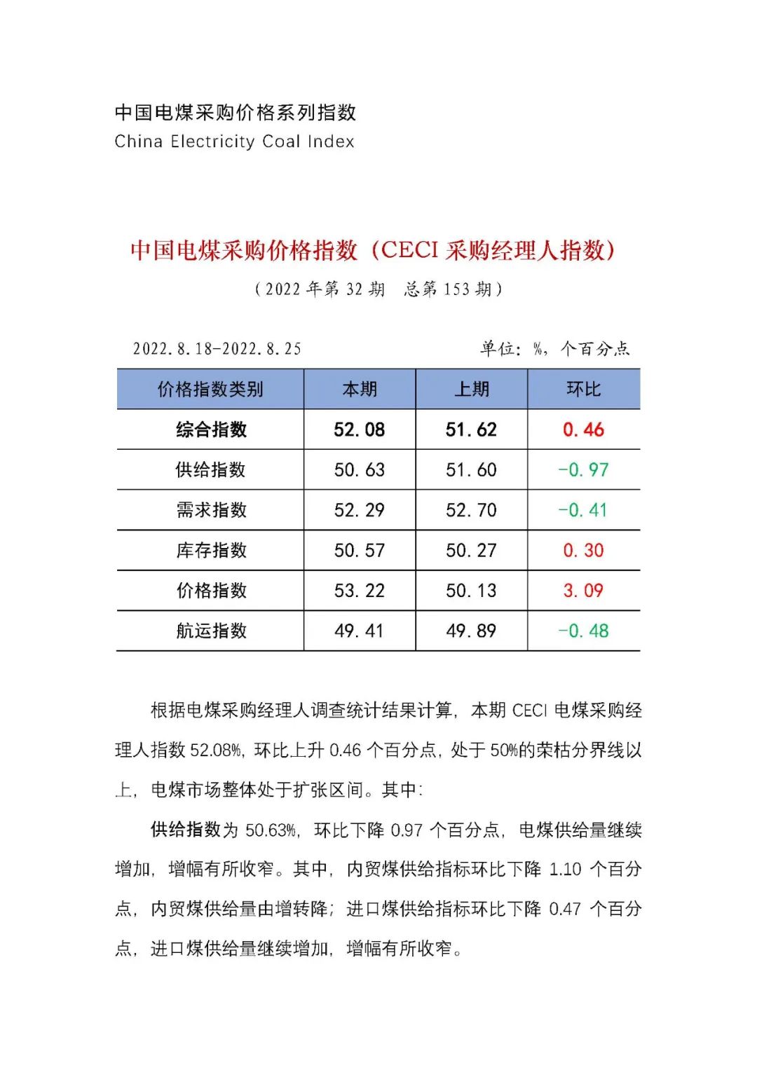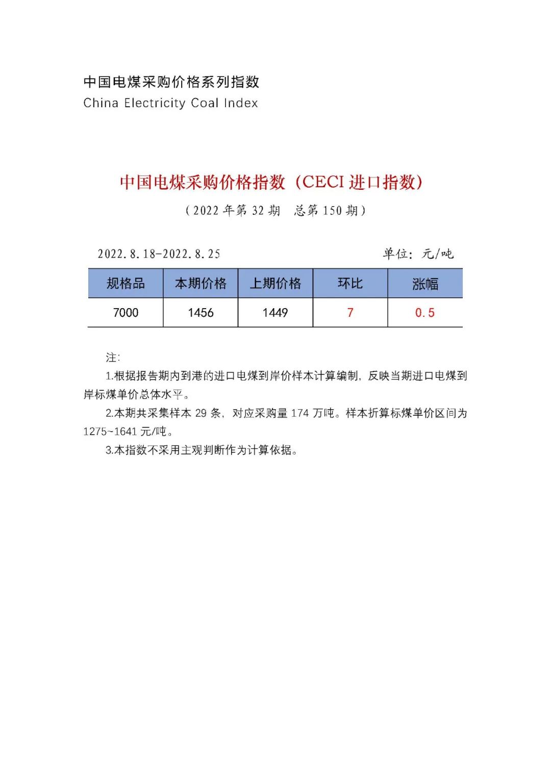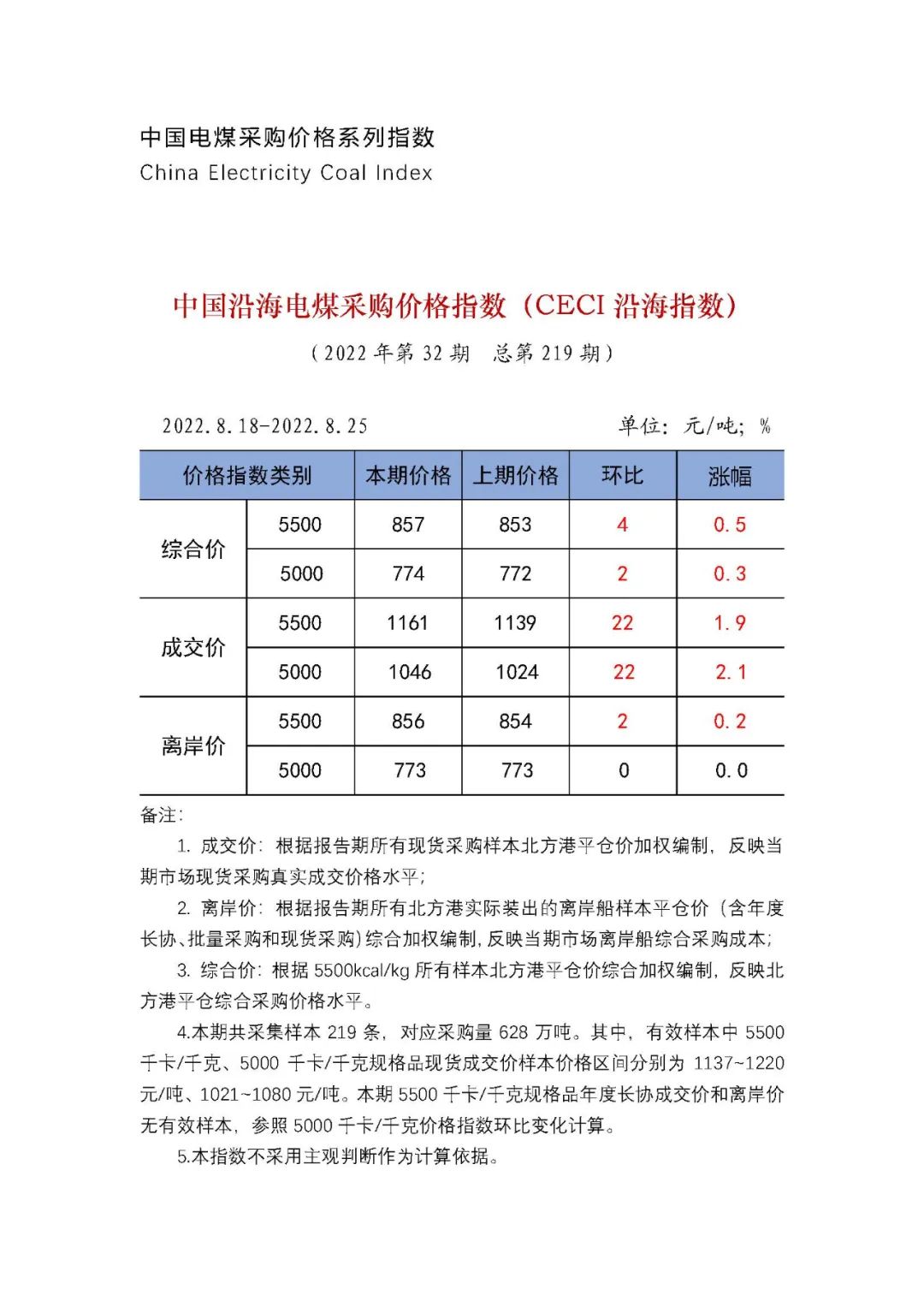 2022年|中國(guó)電煤采購(gòu)價(jià)格CECI系列指數(shù)(2022年8月18日-8月25日)