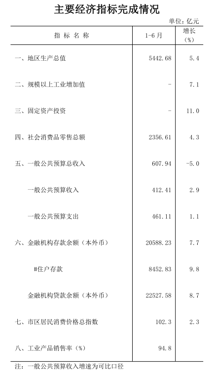 (福建省)福州市2022年上半年主要經(jīng)濟(jì)指標(biāo)完成情況