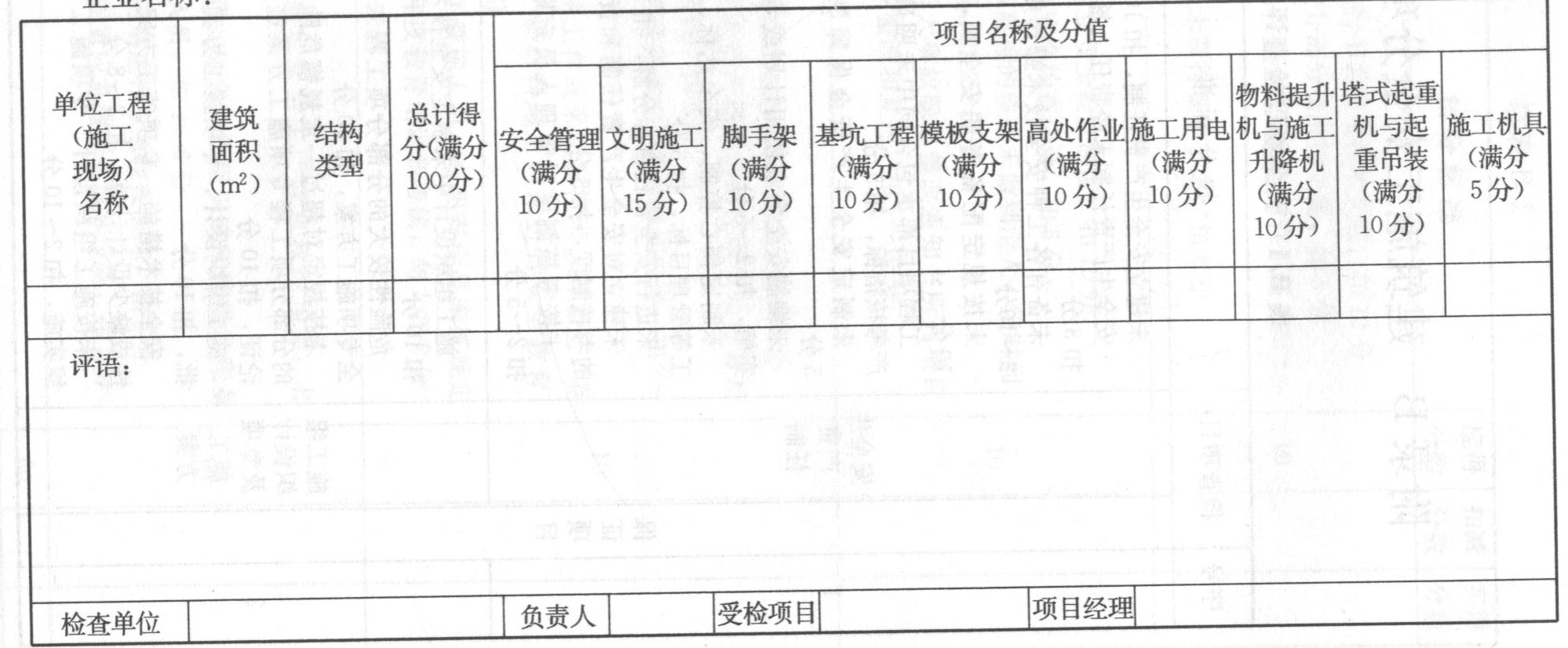 附錄A 表A建筑施工安全檢查評分匯總表 企業(yè)名稱:
