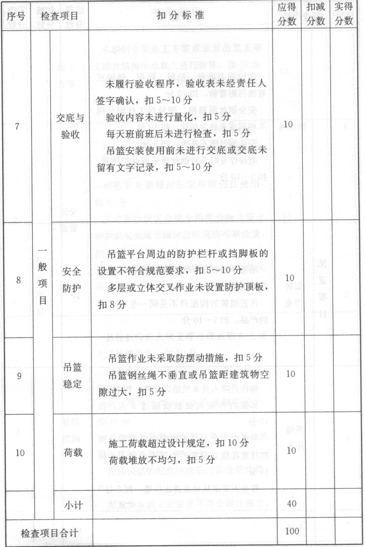 表B.10 高處作業(yè)吊籃檢查評分表(免費下載)JGJ 59-2011 建筑施工安全檢查標(biāo)準(zhǔn)