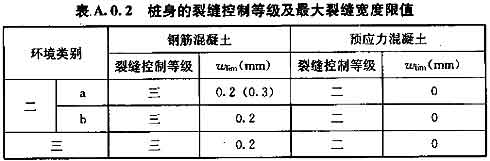 A. 0.2 樁身裂縫控制等級及最大裂縫寬度應根據環(huán)境類別和水、土介質腐蝕性等級按表A. 0.2規(guī)定選用。