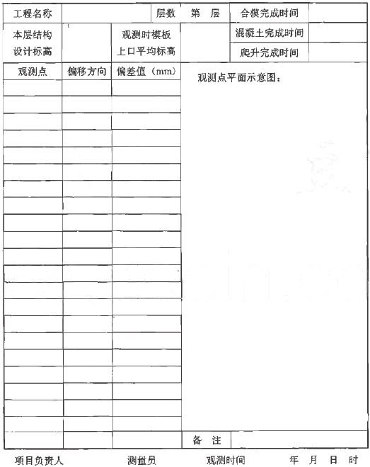 附錄C 爬模工程垂直偏差測(cè)量記錄表