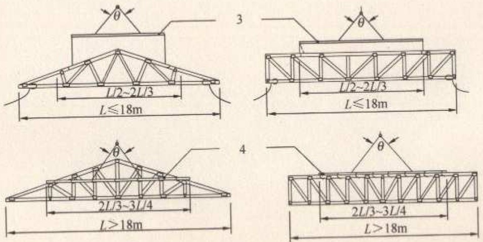 4 當(dāng)桁架跨度為L>18m時(shí),桁架可采用長度為2L/3~3L/4的起吊梁起吊;