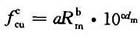 ——由同一試塊的平均回彈值Rm及平均碳化深度值dm按回歸方程式算出的混凝土的強度換算值(MPa),精確至0.1MPa;