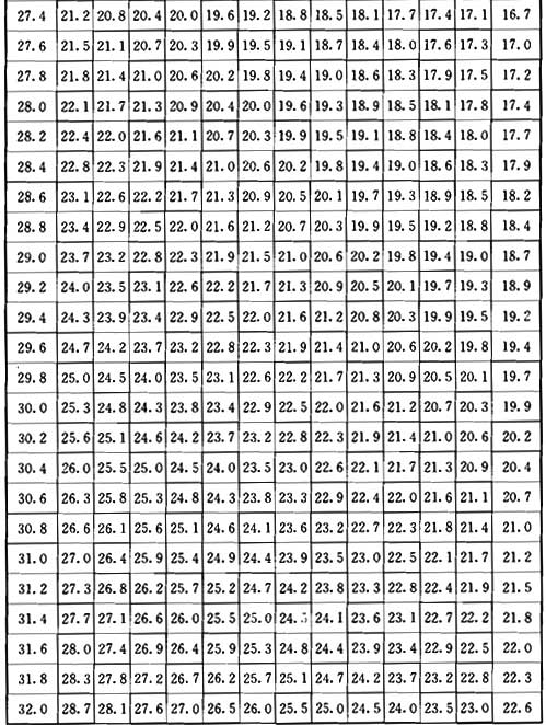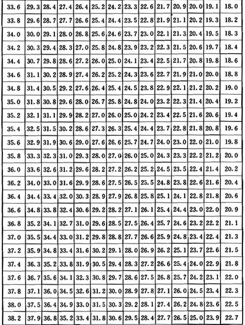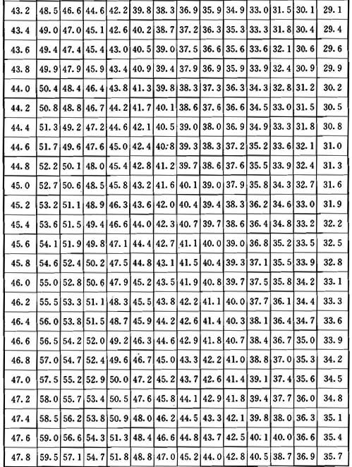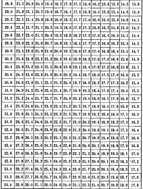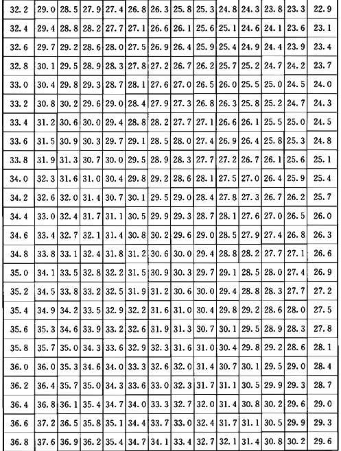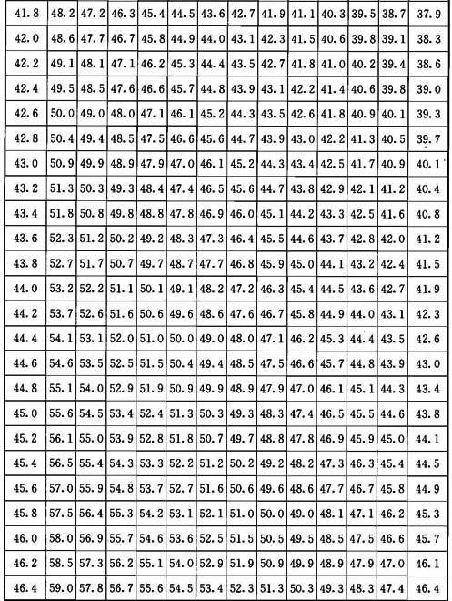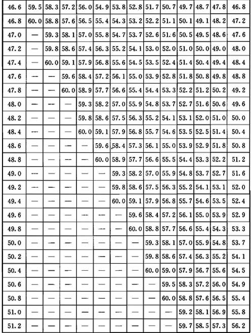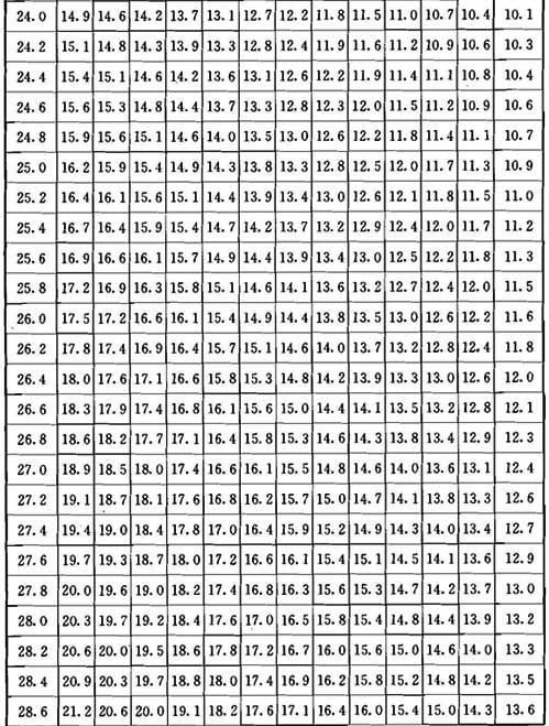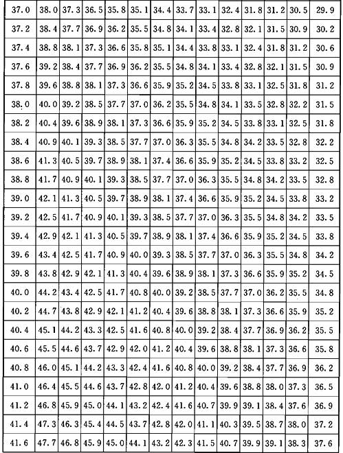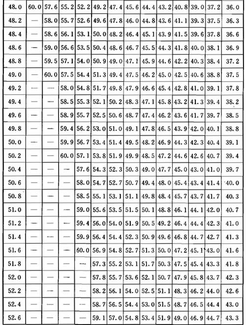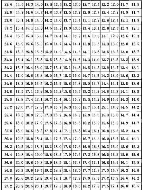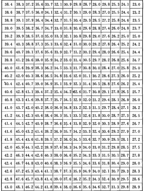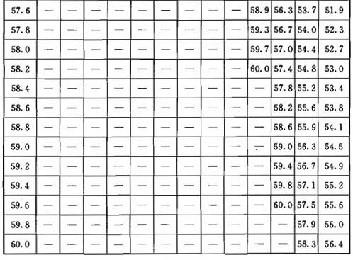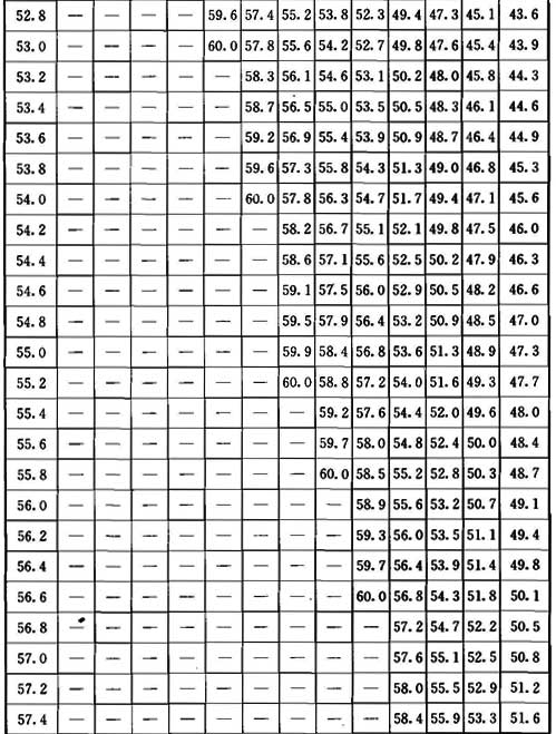 2 表中未列入的相應(yīng)于Rmα的修正值Rmα,可用內(nèi)插法求得,精確至0.1。