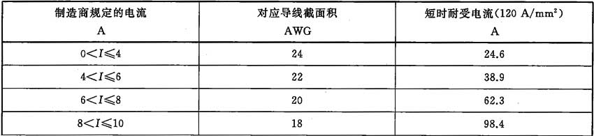 表D.5 短時耐受電流和對應(yīng)的導線尺碼(AWG)