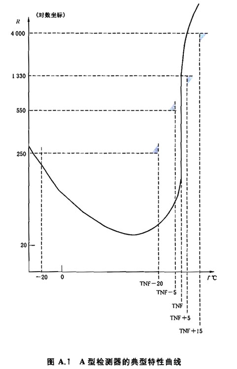 每一個(gè)檢測器的電阻,在指定的溫度(參考額定動作溫度TNF)下,應(yīng)滿足下列條件,并按照A.2規(guī)定的試驗(yàn)(見圖A.1)進(jìn)行驗(yàn)證: