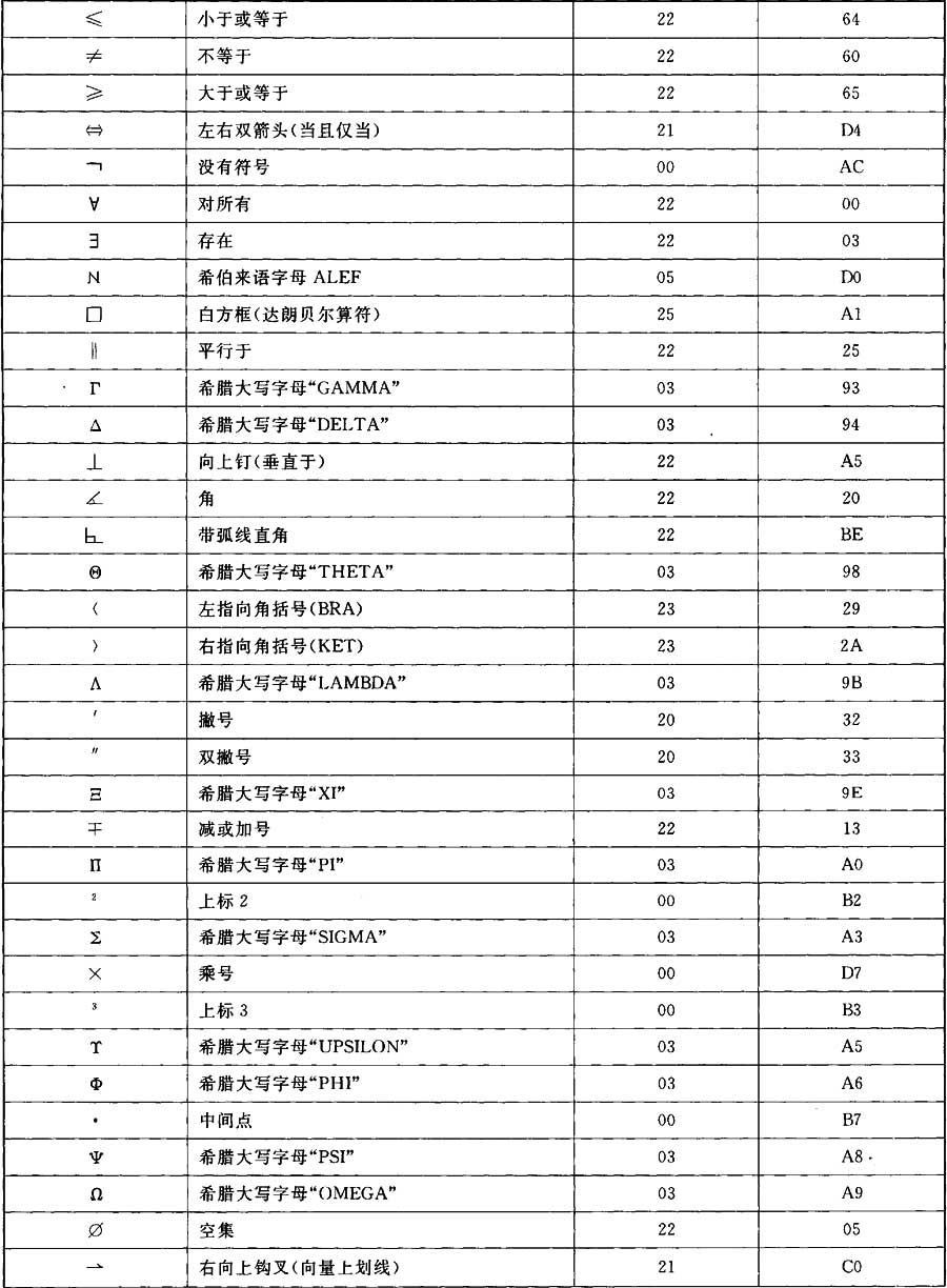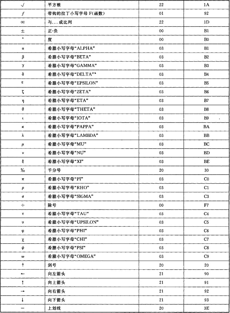 ——GB/T 13000.1基本多語(yǔ)言平面(BMP)(組00的平面00)00行的所有字符。
